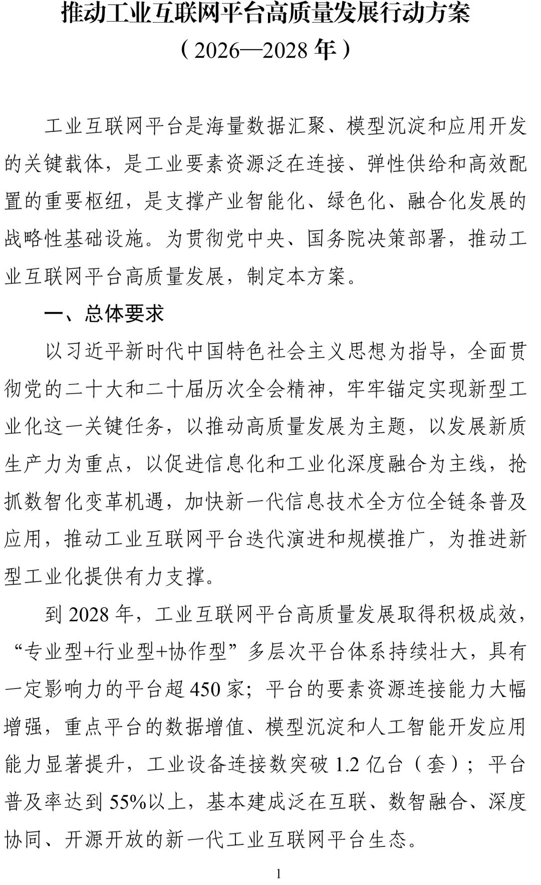 《推动工业互联网平台高质量发展行动方案(2026—2028年)》解读
